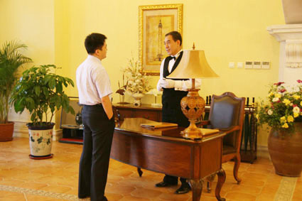 岳奇经理与力旺服务人员交流