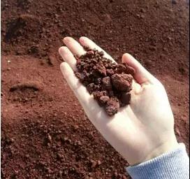 看,这就是风化沉积的玄武岩土壤。