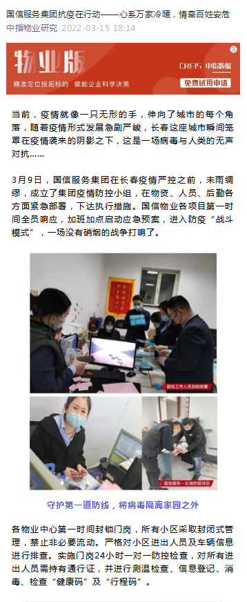 【中指物业研究】国信服务集团抗疫在行动——心系万家冷暖,情牵百姓安危