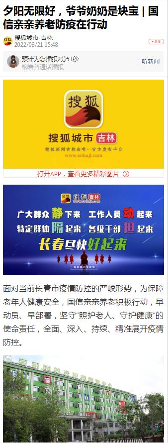 【搜狐城市-吉林】夕阳无限好,爷爷奶奶是块宝 | 国信亲亲养老防疫在行动