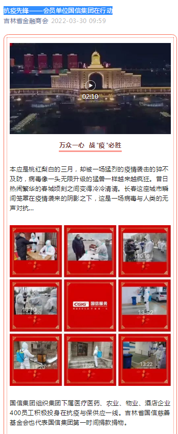 【吉林省金融商会】抗疫先锋——会员单位国信集团在行动