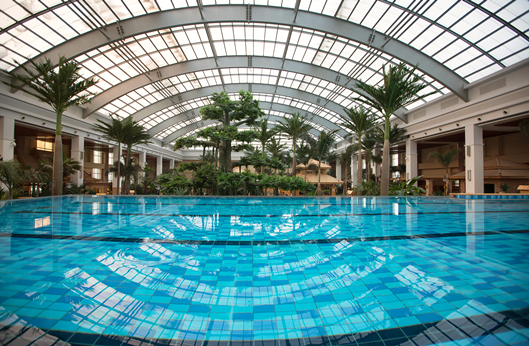 酒店占地面积约七万平方米,集休闲、娱乐、商务、度假为一体,是中国最具特色的温泉文化主题酒店之一。舒适典雅的标准房、豪华房、商务套房等300余间,清新优雅的中西餐厅,宴会厅,应您所需,让您尽享宾至如归。大型无柱宴会厅采用世界顶级智能化音响灯光设备,可同时容纳1000余人,是举办各类主题婚宴、社交聚会、商务会议的理想场所。